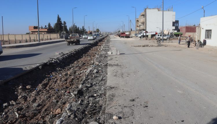 الاستمرار بتنفيذ مشروع المنصف في طريق المدخل الغربي لقامشلو
