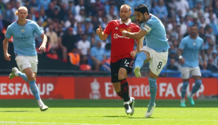 بعد 13 ثانية من ركلة البداية، تقدم مانشستر سيتي بـ”صاروخية” الألماني إلكاي غوندوغان، في شباك مانشستر يونايتد، ضمن نهائي كأس الاتحاد الإنجليزي على استاد ويمبلي، السبت.