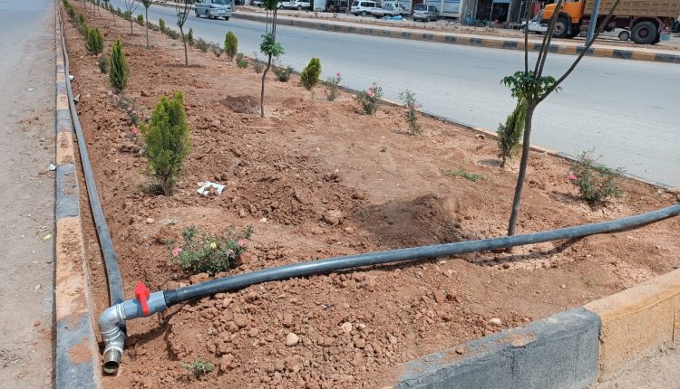 تنفيذ مشروع “الري بالتنقيط” للأشجار والأزهار في منصف المدخل الغربي لمدينة قامشلو