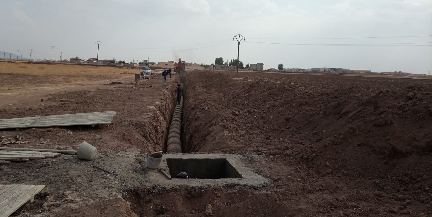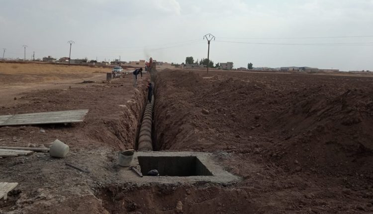 بلدية قامشلو تعمل على تمديد شبكة صرف صحي في قرية نافكر
