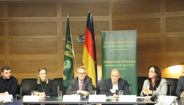 وحضر الندوة الرئيس المشترك لدائرة العلاقات الخارجية، “بدران جيا كُرد”، والرئيسة المشتركة لحزب الاتحاد السرياني “نظيرة كورية”، إلى جانب د. “أندرياس راينكى” مدير معهد الشرق الألماني، والصحافية الألمانية “كريستين هيلبرغ”.