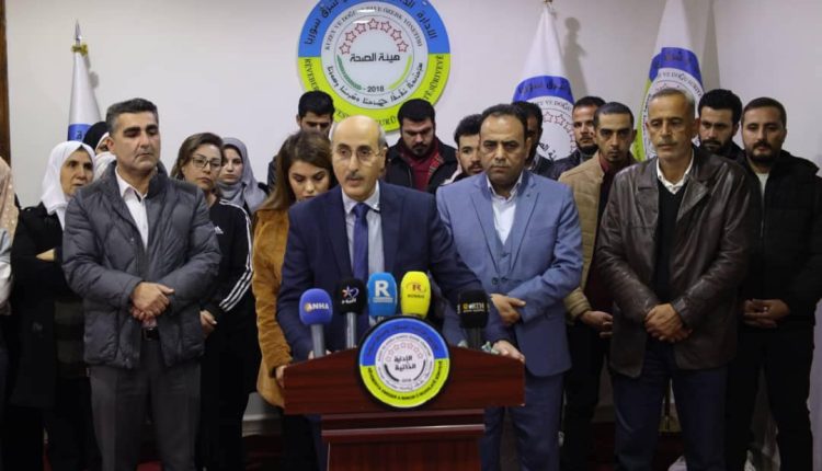 أصدرت هيئة الصحة في إقليم شمال وشرق سوريا بياناً إلى الرأي العام، استنكرت فيه هجمات العدوان التركي على مناطق (روجأفا) إقليم شمال وشرق سوريا، ولا سيما التدمير الكلي لمحطة الأوكسجين المركزية والكثير من المراكز الصحية، إضافة إلى حصول أضرار كبيرة في مركز غسيل الكلى، الوحيد في المنطقة، والذي يقدم الخدمة لما يقارب الــ/100/ مريض وبمعدل /250/ جلسة أسبوعياً.