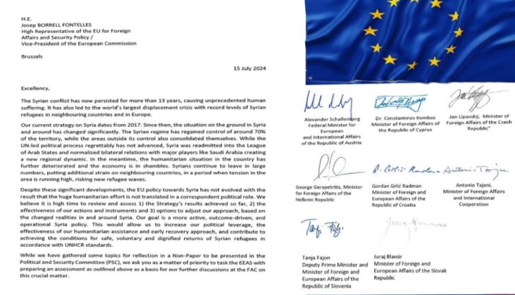 بالتزامن مع تعيين سفير في دمشق، أرسل تاياني ووزاء خارجية ست دول أخرى، رسالة إلى بوريل الذي كلف دائرة العمل الخارجي الأوروبي بدراسة ما يمكن القيام به وتقديم خيارات للقادة الأوروبيين.