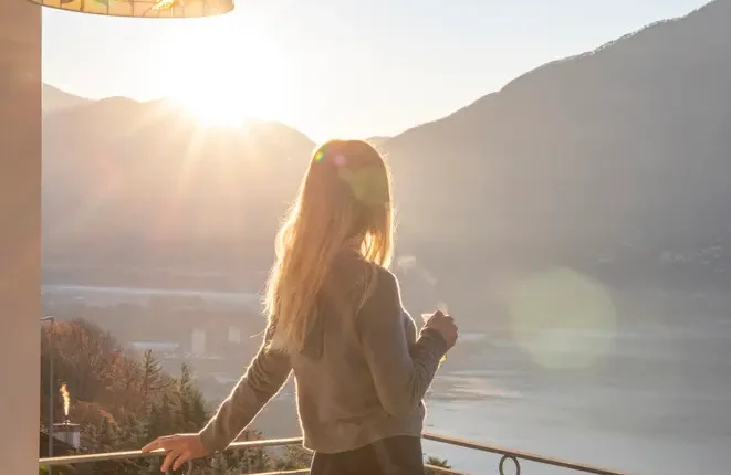 يمكن الحصول على بعض أشعة الشمس بالوقوف أو الجلوس في الشرفة صباحا حيث تعمل الأشعة في الصباح الباكر على تعزيز إنتاج فيتامين “د” وتعزز مستويات السيروتونين أيضاً مما يمكن أن يُحسن جودة النوم.