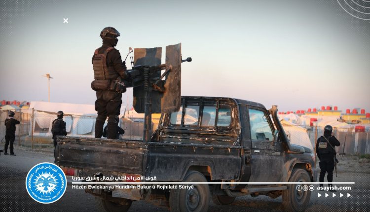 أعلن المركز الإعلامي لقوى الأمن الداخلي (الآسايش) عن إلقاء القبض على 7 عناصر من خلايا تنظيم داعش، كانت قد شاركت في ارتكاب عمليّات إرهابيَّة داخل المخيم، وكذلك عملت على ابتزاز القاطنين فيه ، ضمن عملية الأمن الدائم، التي أطلقتها غرفة العمليات المشتركة يوم الأربعاء الفائت في مخيم الهول ومحيطه.