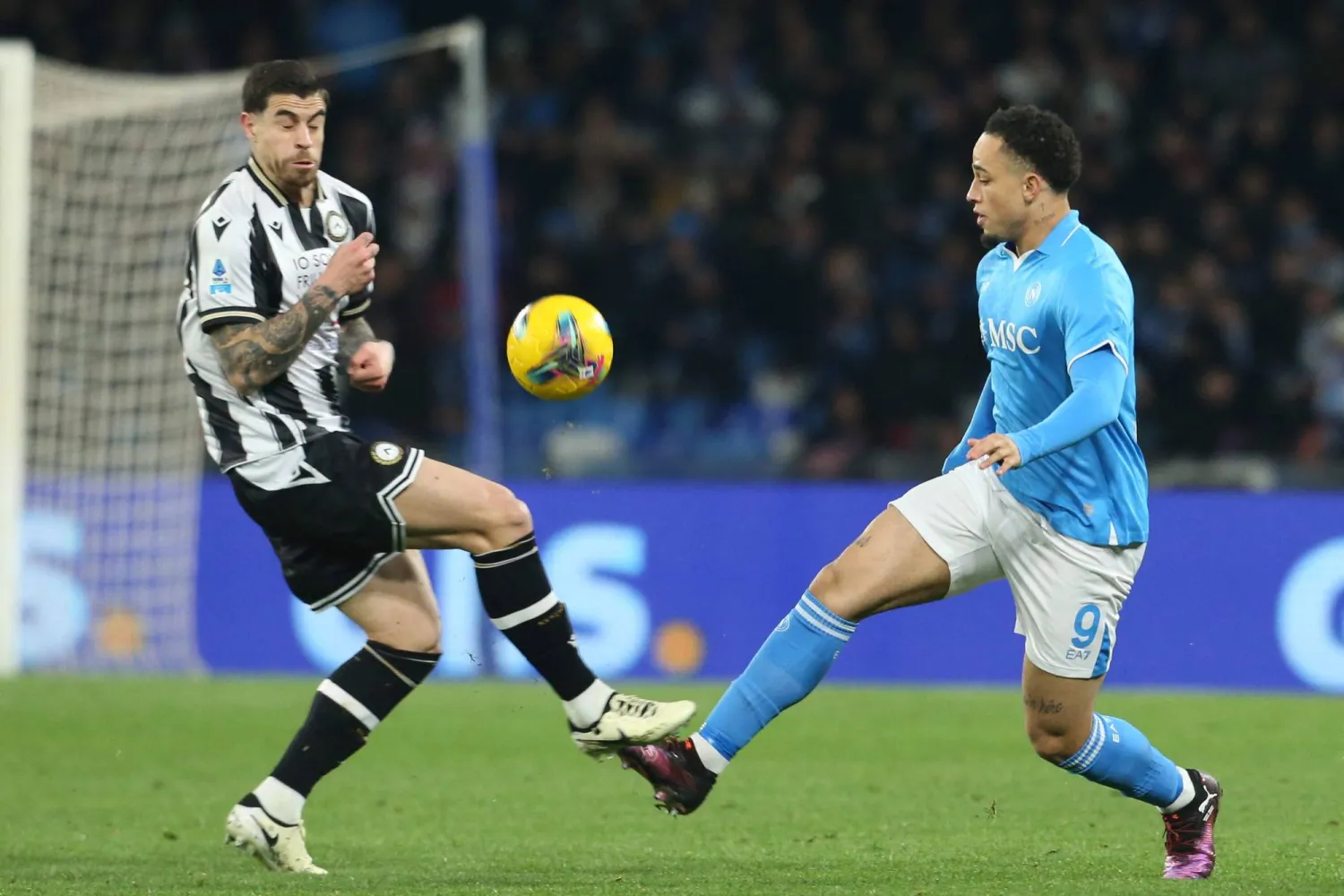 وكان نابولي السباق إلى التسجيل في الدقيقة 37 بكرة رأسية من الاسكوتلندي سكوت ماكتوميناي إثر ركلة ركنية، لكن أودينيزي رد سريعاً وأدرك التعادل بهدف رائع من كرة أطلقها من زاوية صعبة من خارج منطقة الجزاء الهولندي يورغن إيكيلينكامب (40) الذي منح فريقه نقطته الثلاثين في المركز العاشر.