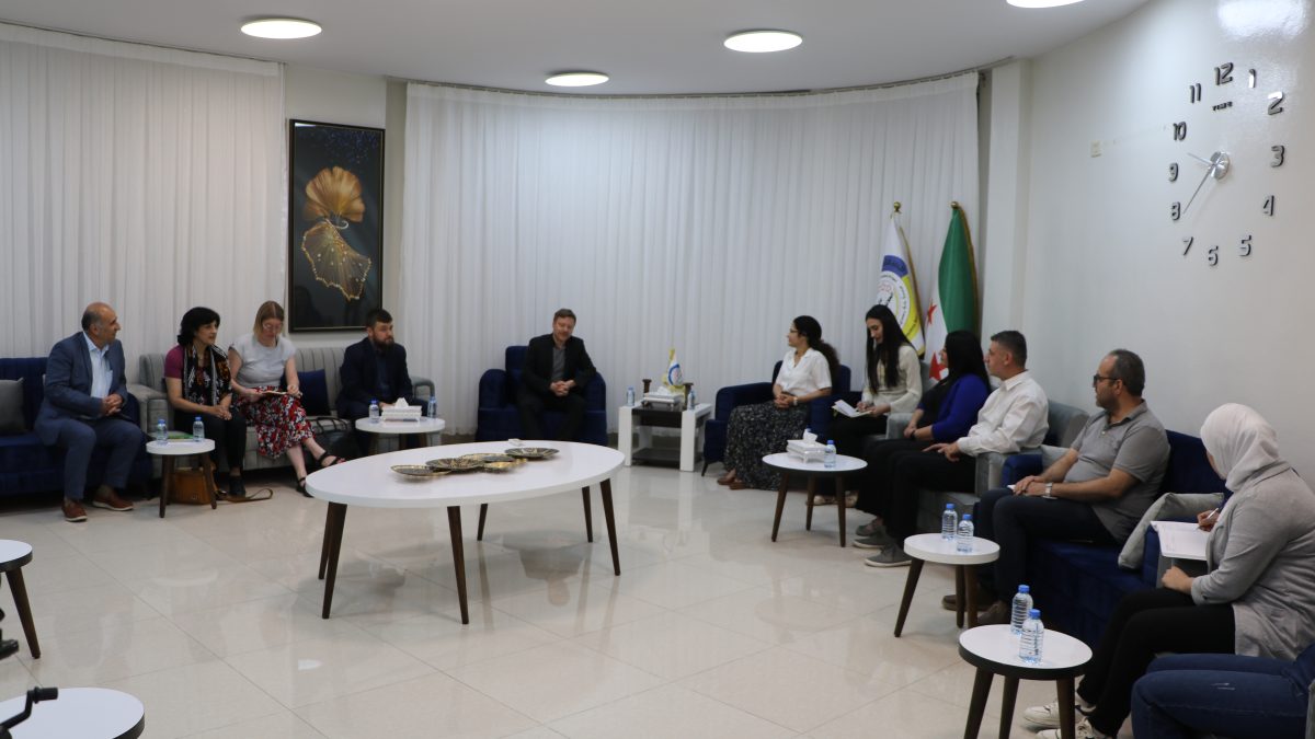 زار، أمس السبت، وفد من البرلمان الأوروبي برئاسة مارتن شيردوان الرئيس المشترك لمجموعة اليسار في البرلمان الأوروبي، و فيليب ديجينهارد مدير القسم الدولي في مؤسسة روزا لوكسمبورغ، و فائق ياغيزاي ممثل حزب المساواة والديمقراطية لدى المؤسسات الأوروبية في ستراسبورغ، والدكتورة سارة غلين صحفية مستشارة فائق ياغيزاي، ونورا فريز ويندنبورج مساعدة لمارتن شيردوان، لمقر دائرة العلاقات الخارجية، في قامشلو.