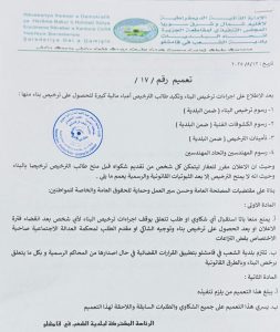 كما شدد التعميم على التزام بلدية الشعب في قامشلو بتطبيق القرارات القضائية الصادرة عن المحاكم الرسمية فيما يخص البناء، داعيًا جميع المواطنين والجهات المعنية إلى الالتزام بمضمونه اعتبارًا من تاريخ صدوره.