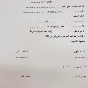 5- “لا مانع من الزواج” صادر عن الكومين ومصدقة من مجلس الحي بالنسبة لعقود الزواج الجديدة.