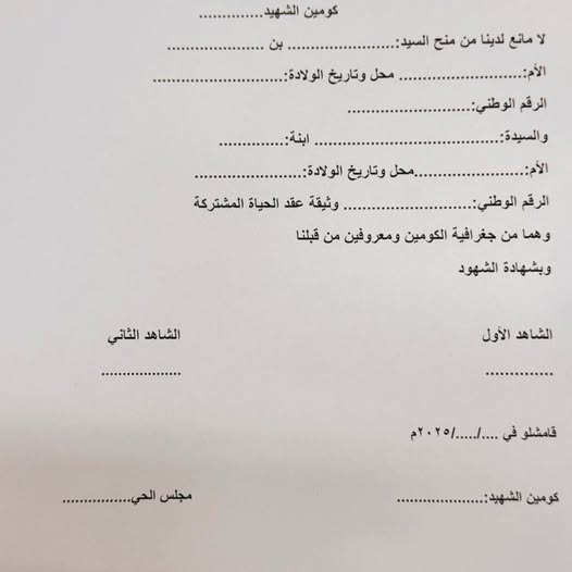 ونوهت البلدية أنه في حال وجود أطفال لدى الزوجين يتم إضافتهم جميعاً بكتاب ملحق أو بيان عائلي من الكومين ومصدق من مجلس الحي مع تاريخ الولادة باليوم والشهر والسنة لكل طفل وذلك للذين كانت ولاداتهم قبل تاريخ ٢٠٢٥/١١/١م، أما الولادات بعد تاريخ ٢٠٢٥/۱۱/۱م فيجب إحضار بيان ولادة مصدق من هيئة الصحة.