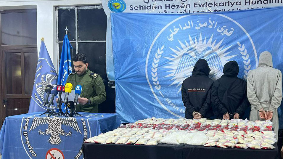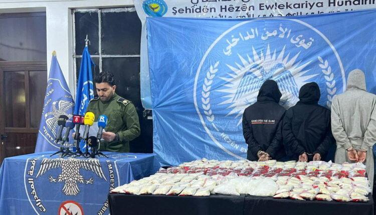 أعلنت القيادة العامة لقوى الأمن الداخلي “الآساييش”، في بيان، السبت، إلقاء القبض على أربعة أشخاص من كبار تجار المخدرات في مدينة قامشلو، وضبط بحوزتهم 283 ألف حبة كبتاغون و5 كيلوغرامات من مادة الكريستال ميث المخدرة، كانت معدّة للترويج والاتجار بها ضمن مقاطعة الجزيرة.