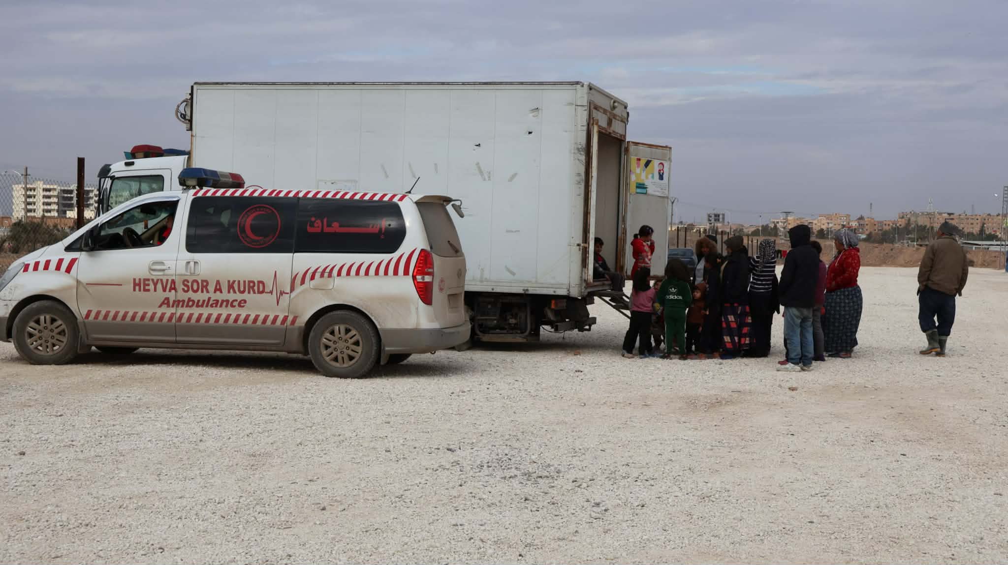 بادر الهلال الأحمر الكردي إلى تقديم مساعدات طبية عاجلة للمهجّرين قسرًا من حيي الشيخ مقصود والأشرفية، عبر عيادة متنقلة وسيارة إسعاف مجهزتين، بإشراف كادر طبي مختص.