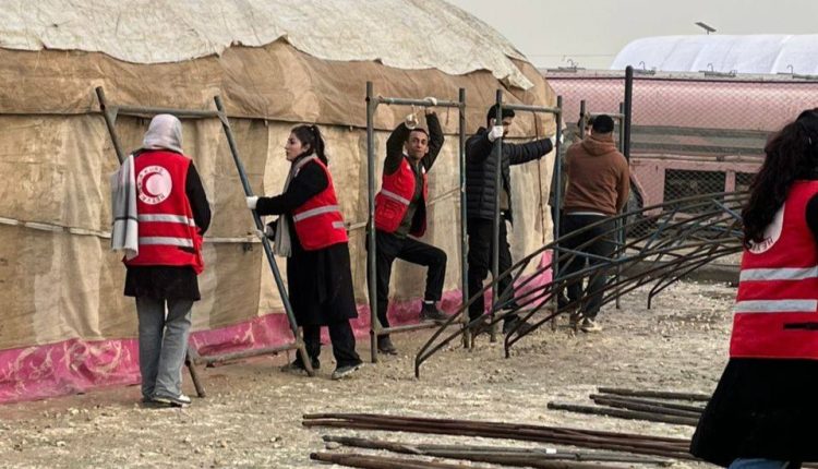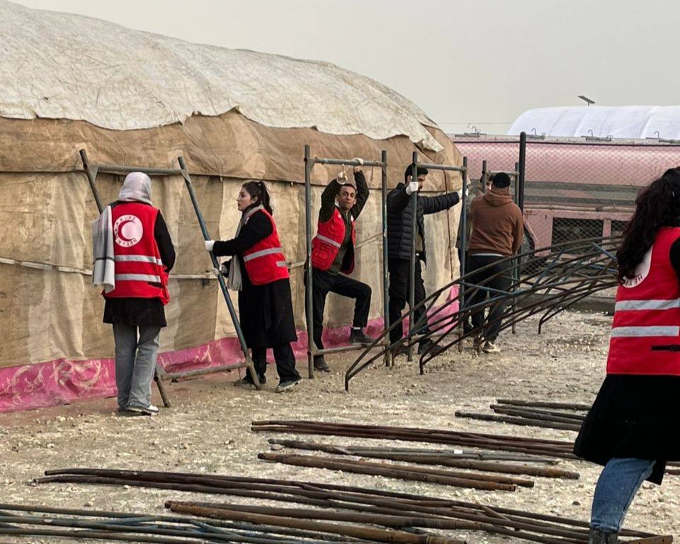 ولضمان إيواء العائلات التي فقدت مساكنها المؤقتة، قامت فرق الهلال الأحمر بنصب خيمتين كبيرتين مجهزتين بكافة المستلزمات من “إسفنجات وبطانيات” لاستقبال العائلات المنكوبة.