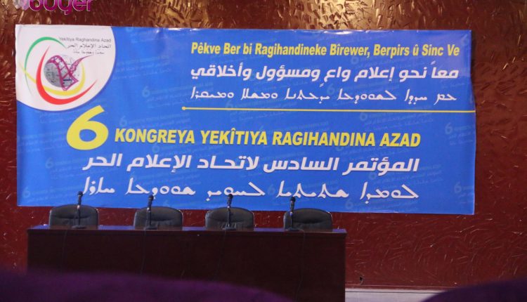 تحت شعار “نحو إعلام واعٍ ومسؤول وأخلاقي”.. عقد اتحاد الإعلام الحر أمس الجمعة، مؤتمره السادس في قاعة جامعة روج آفا بمدينة قامشلو.