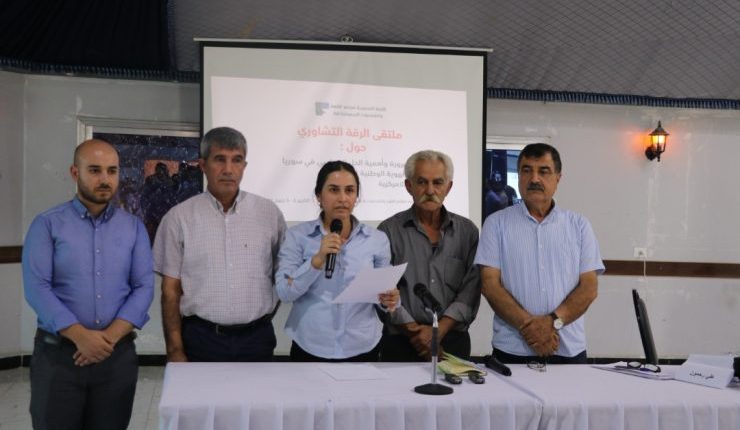 بدعوة من اللجنة التحضيرية لمؤتمر القوى والشخصيات الديمقراطية في سوريا، التقى مجموعه من ممثلي القوى السياسية والمجتمعية والشخصيات السياسية السورية “ملتقى الرقة التشاوري” للحوار والنقاش حول ضرورة وأهمية الحل السياسي في سوريا وأهمية تشكل الهوية الوطنية السورية الجامعة ومفهوم اللامركزية وذلك على مدار يومين.